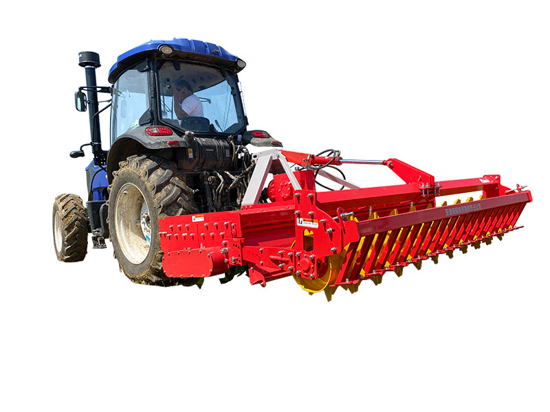 該機具主要用于旋耕整地作業(yè),農(nóng)藝順序為旋耕-旋耕-鎮(zhèn)壓-拖平。專利設(shè)計,合理利用刀軸外端二次動力傳輸,帶動后刀軸工作,達到二次粉碎。機械傳動環(huán)節(jié)少,有效節(jié)省了拖拉機的馬力消耗。一遍頂兩遍的作業(yè)模式,大大提高工作效率。前刀軸和后刀軸連續(xù)作業(yè),拖板鎮(zhèn)壓拖平,提高作業(yè)質(zhì)量。