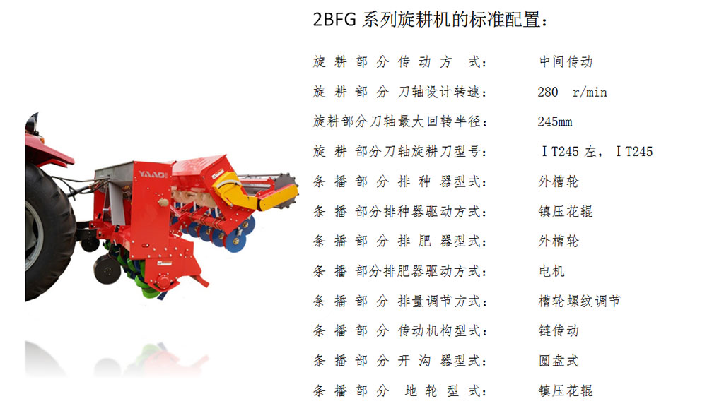 旋耕施肥播種機(jī)是一款多功能農(nóng)業(yè)機(jī)械設(shè)備,它集旋耕、施肥、播種、覆土、鎮(zhèn)壓于一體,一次作業(yè)可完成多項(xiàng)任務(wù),減少機(jī)械進(jìn)地次數(shù),節(jié)約成本。微電腦電機(jī)控制施肥,無(wú)級(jí)調(diào)速,專用設(shè)計(jì)不銹鋼導(dǎo)肥槽,保證撒肥面積均勻,鎮(zhèn)壓輥后驅(qū)動(dòng),增加防滑裝置,保證播種質(zhì)量,配套圓盤開溝器,保證種子落地準(zhǔn)確,防止纏草,一機(jī)多用,經(jīng)過(guò)調(diào)整可以切換為花生平播或壟播,小麥、旱稻、油菜、高梁平播等多種狀態(tài)。主要功能如下: