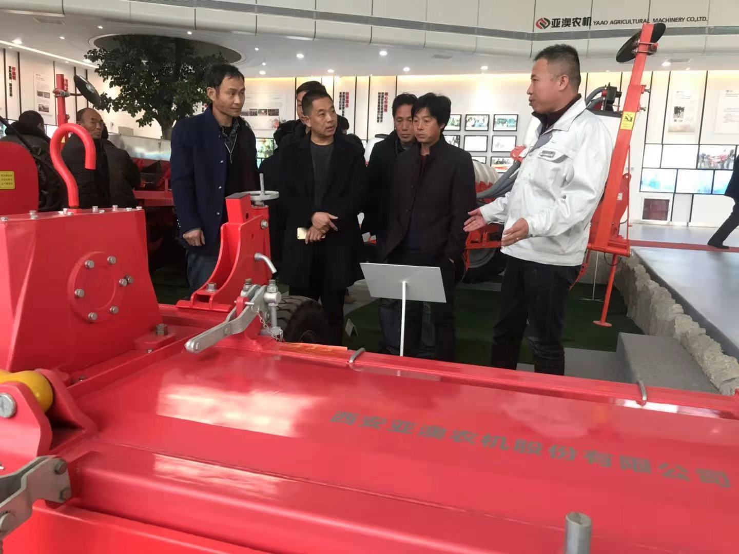 參觀團一行來到公司,王紅衛(wèi)經(jīng)理首先給大家詳細介紹了展廳里陳列的所有代表性機具,同時也介紹了亞澳農(nóng)機的發(fā)展歷程,讓大家對公司的生產(chǎn)歷史有了詳細的認知和了解。
