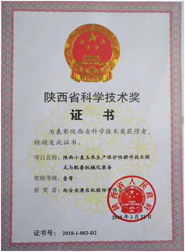 日前,全省科技創(chuàng)新大會暨科學技術(shù)獎勵大會在西安隆重召開,省委書記胡和平出席會議并講話,省長劉國中主持會議,會議表彰了2018年度省科學技術(shù)獎獲獎項目,并向最高成就獎及一等獎獲獎?wù)哳C發(fā)了獎勵證書。亞澳農(nóng)機和西北農(nóng)林科技大學合作研發(fā)的“陜西小麥玉米生產(chǎn)保護性耕作技術(shù)模式與配套機械化裝備”項目成果榮獲省科技進步一等獎。