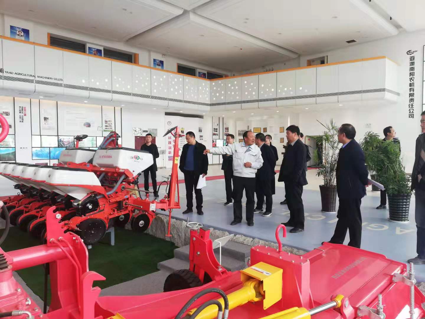 2019年11月19日上午,南陽市市委辦副主任趙玉云攜市發(fā)改委副調研員馬秋柏等一行在唐河縣工信局領導的陪同下蒞臨亞澳農機視察亞大型復式旋耕機智能制造新模式項目發(fā)展建設情況。