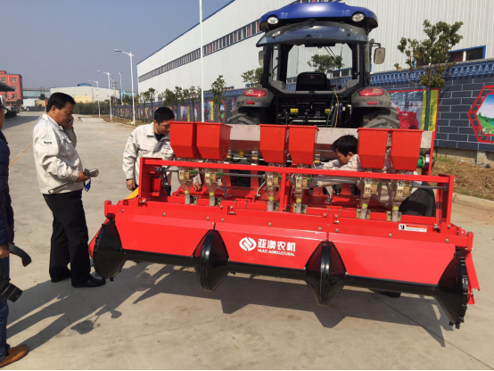 唐河縣土地面積250多萬畝,花生種植面積60多萬畝。為了推進唐河花生種植面積能夠進一步擴大,縣政府指示依托縣農機產業(yè)園亞澳農機生產、研發(fā)專門用于花生種植、收獲的機械。亞澳今天投放市場的花生精量播工作效率相當于60人的工作量,已成為春耕的主力軍。在上屯鎮(zhèn)演示會現場,隆隆的機聲中,四臺不同規(guī)格的花生精量施肥播種機同時作業(yè)。所到之處,能夠一次性完成播種、施肥、起壟等多道工序,實現了多壟多行寬幅聯合播種作業(yè)。
