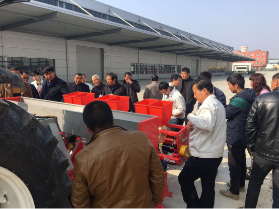 現場會上,亞澳專業(yè)技術人員及銷售經理對我廠新研發(fā)的花生精量播種機做了詳細介紹,各鄉(xiāng)鎮(zhèn)社員及各站站長針對花生種植技術、施肥方法和機械化播種等方面做了詳細講解。隨后,60名用戶和農技人員一同觀摩了機械化播種演示。