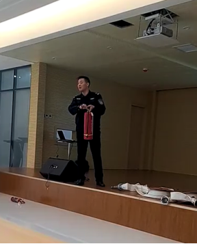 活動分兩部分進(jìn)行:第一部分有王教官針對防火安全知識,結(jié)合案例介紹,培訓(xùn)大家對日常工作安全的應(yīng)急預(yù)案、隱患防護(hù)方法及應(yīng)對措施;第二部分通過現(xiàn)場防火安全演練,教育大家正確使用防火器材,同時對日常的安全隱患檢查、排除指導(dǎo)。