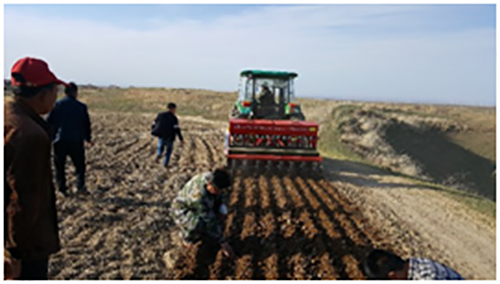 為推動保護性耕作技術的進一步深入開展,充分展示保護性耕作的優(yōu)特點,由自治區(qū)農(nóng)牧機械化推廣總站、奇臺縣農(nóng)機推廣站、吉布鎮(zhèn)農(nóng)機管理站和西安亞澳農(nóng)機股份有限公司多方合作,在奇臺縣吉布庫鎮(zhèn)天河四村確定實施三年百畝保護性耕作示范田,主要采取的技術措施:2016年秋季采用200馬力以上大型拖拉機帶動1S-300深松犁在山旱地進行深松作業(yè),深松深度達到40厘米以上,深松作業(yè)覆蓋率50%以上,2017年春季采用西安亞澳農(nóng)機股份有限公司最新研制的免耕播種機一次性完成破茬、開溝、種肥分施、覆土、鎮(zhèn)壓作業(yè),完成深松+免耕播種春小麥170畝,同時在同等土壤肥力、種肥相同的條件下,又建立對比試驗田2個(秋季深松+常規(guī)播種試驗田1個,秋翻作業(yè)+常規(guī)播種試驗田一個),為今后不同模式下經(jīng)濟效益對比分析打下良好的基礎。