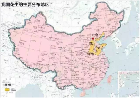 花生主要分布在我國(guó)東部的暖溫帶、亞熱帶、熱帶的沙土和丘陵地區(qū)